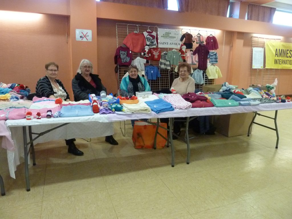 Les visiteurs ont été assez nombreux et les bénévoles de l’association ont pu expliquer leurs actions de solidarité. De bons moments partagés, des promesses de dons de laine … Et quelques tricoteuses rejoindront peut-être le groupe des amies de Saint-Avold.