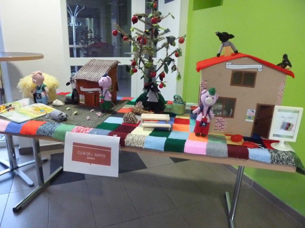 Claudie, Déléguée du groupe, a présenté quelques réalisations faites pour la vente. Mais le groupe en a profité pour exposer le conte qui avait été fabriqué pour le salon Créativa 2019. Une belle manière de montrer aux visiteurs le savoir-faire des tricoteuses de la délégation.
