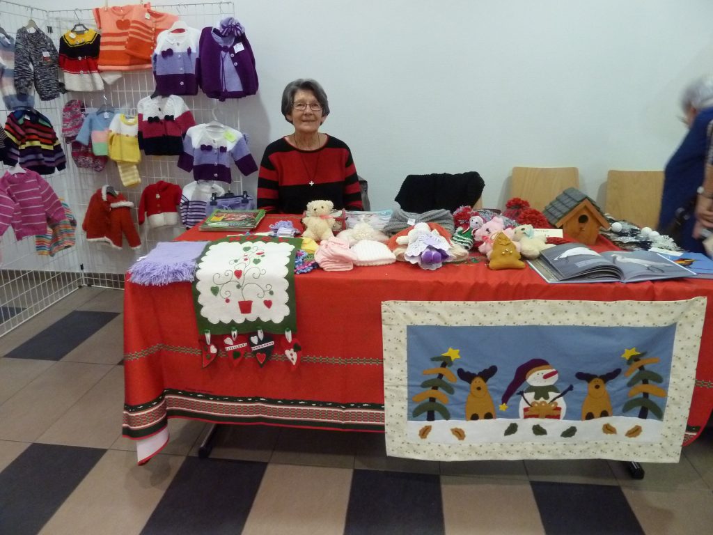 Elles ont pu faire admirer leur production, tous ces tricots réalisés pour la vente ; une vente à bas prix bien entendu ! Nous ne sommes pas un commerce, nous essayons simplement de récupérer le prix de la laine.