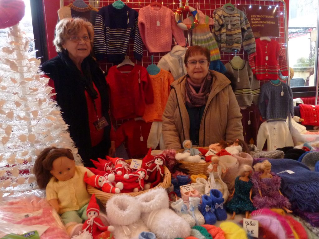 Les amies du groupe des tricoteuses de Saint-Avold ont participé au marché de Noël équitable.