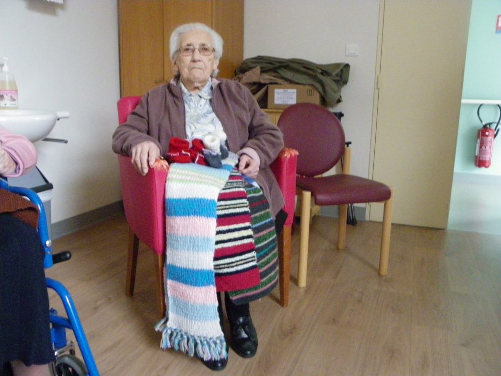 Un premier rendez-vous avait lieu à la Châtaigneraie, résidence Domytis à Panazol pour rencontrer, une nouvelle fois, un groupe de tricoteuses très impliqué dans l’humanitaire et qui avaient largement œuvré pour le Téléthon. Comme chaque année, elles ont pensé à l’équipe d’ASF 87 en leur remettant leurs invendus : de magnifiques tricots, couvertures, bonnets, écharpes, pulls et même des sacs tricotés… de quoi regarnir les étagères en vue des prochaines distributions. Et, là-dessus, un appel de Mme Laroudy de l’EHPAD Les Chênes qui leur apprend que, comme l’an dernier, après leur marché de Noël, il reste aux tricoteuses de nombreux ouvrages qu’elles réservent aux bénévoles d’ASF. Une rencontre est programmée et, là aussi, l’équipe reçoit des écharpes, des chaussons et de magnifiques couvertures extraordinairement bien assemblées et doublées par les soins de l’animatrice… Accueil chaleureux (comme à Panazol ) de la part des tricoteuses qui ont su garder le sourire et le cœur à l’ouvrage.