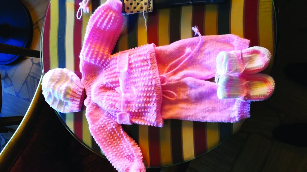 L’ensemble layette et ses chaussons offert par Madame Vernay à la délégation de l’Allier.
